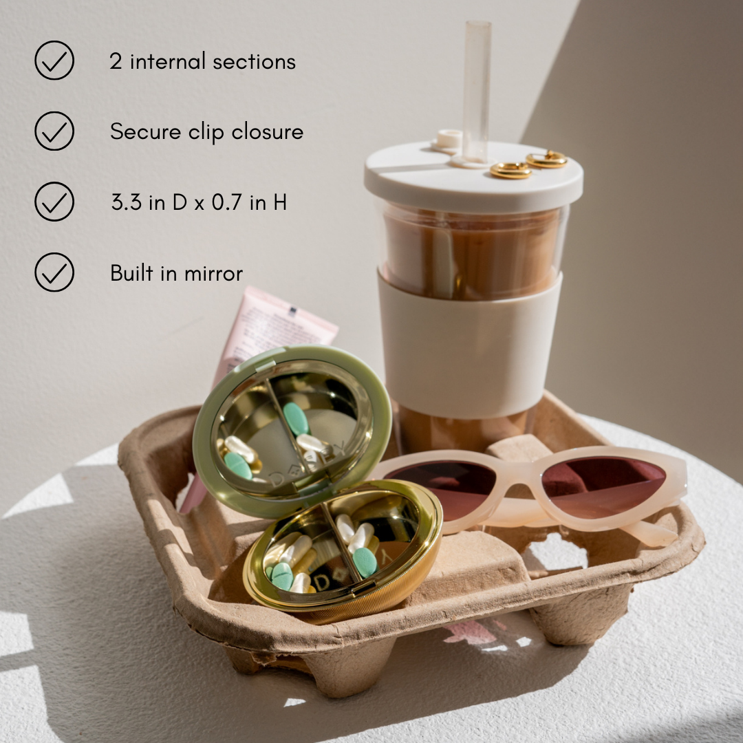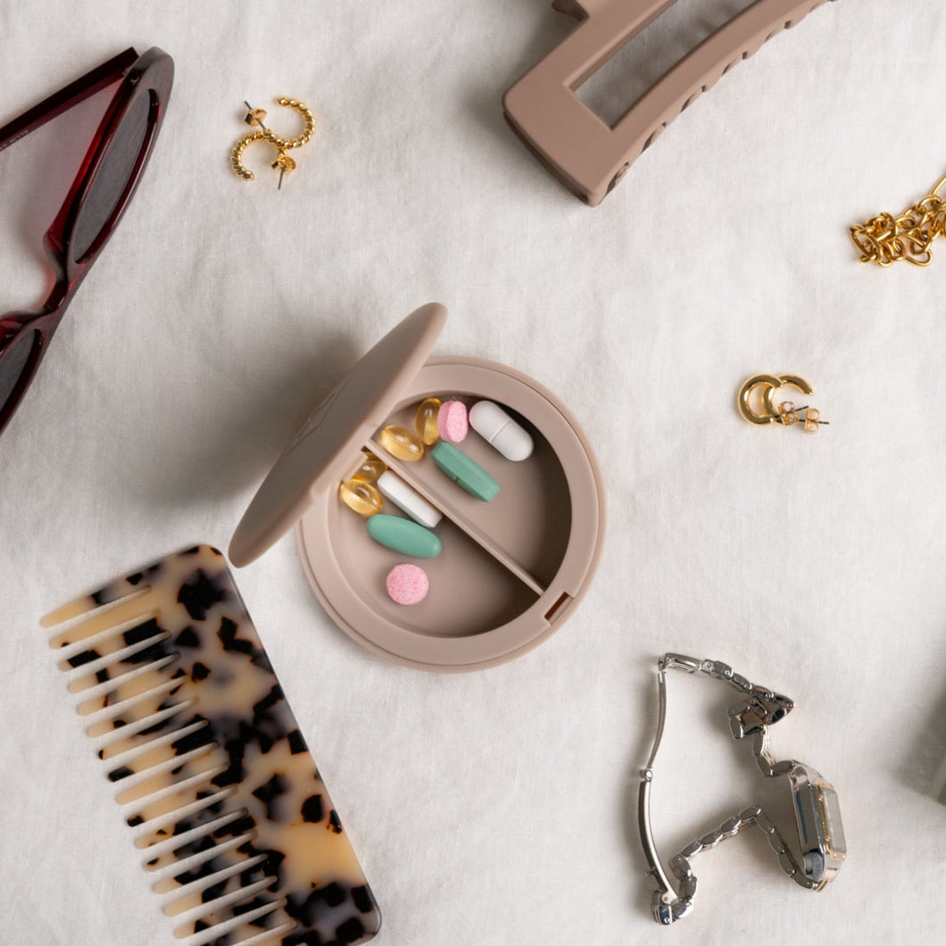 Elevate your pill organization with the Pill Compact, where classic elegance meets modern practicality for a beautifully refined medication solution.